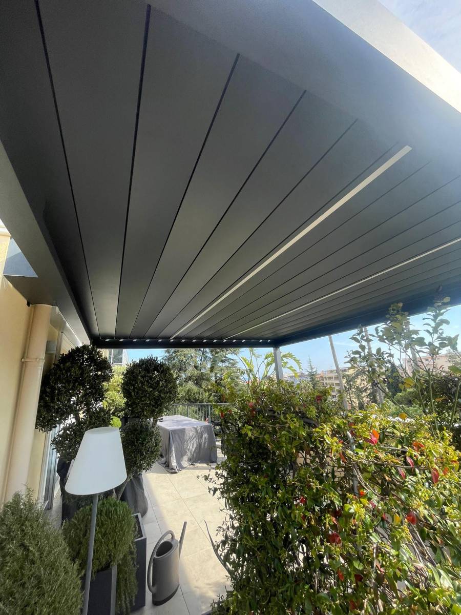 Cette pergola bioclimatique à lames orientables de la marque CORRADI a été installé rapidement par nos équipes chez ce client situé à Roquebrune cap Martin.