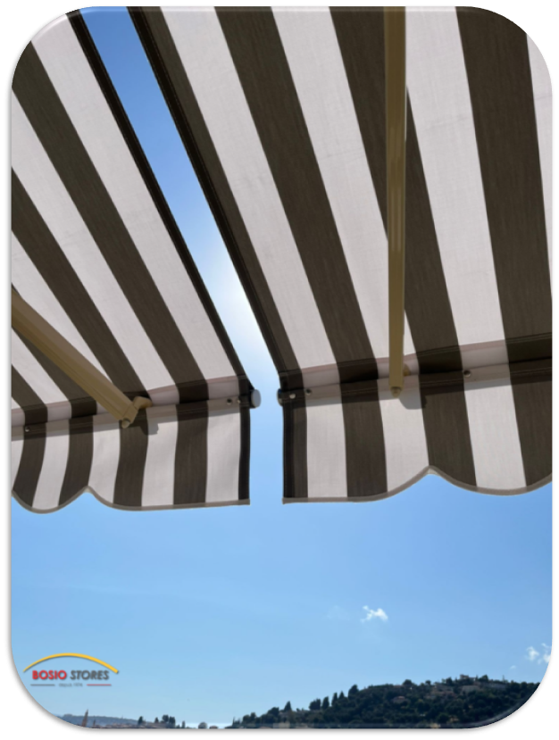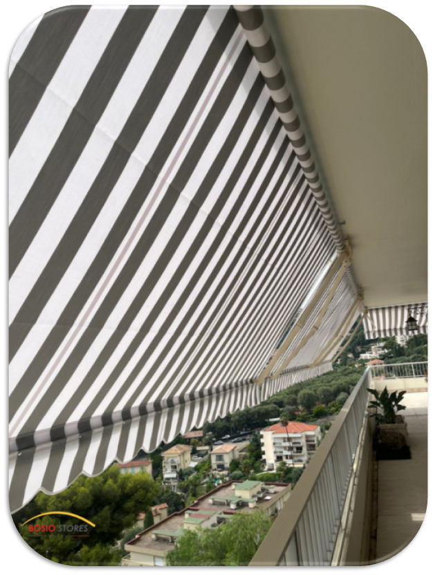 L'entreprise Bosio Stores situé à Roquebrune cap martin propose la pose de stores manuels MATEST – modèle Menton, une solution idéale pour équiper votre terrasse ou vos grands balcons. Conçu pour offrir un confort optimal, ce store se distingue par ses bras robustes équipés de puissants ressorts de traction et de deux câbles gainés, garantissant une tension parfaite de la toile. Grâce à ce système, le store assure une compensation angulaire précise, permettant une ouverture fluide et durable.